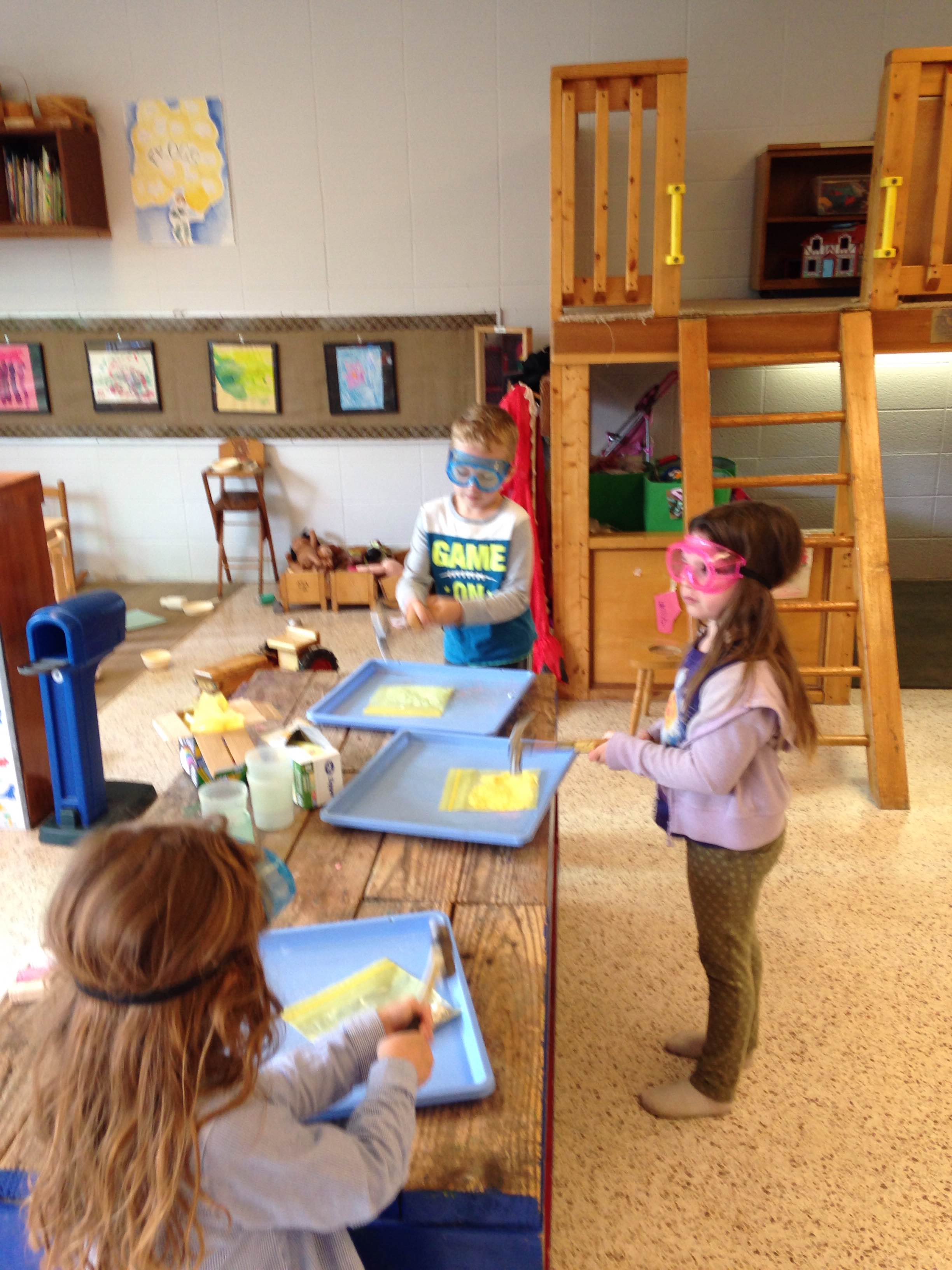 We took a trip to the Indiana Museum of Art and were introduced to different pieces in the museum while on our tour. While at the museum, the question of how paint is made came up so we tried creating a couple of different types of paint when we were back in class…crushing chalk to make our own “chalk paint” ended up being a huge hit!